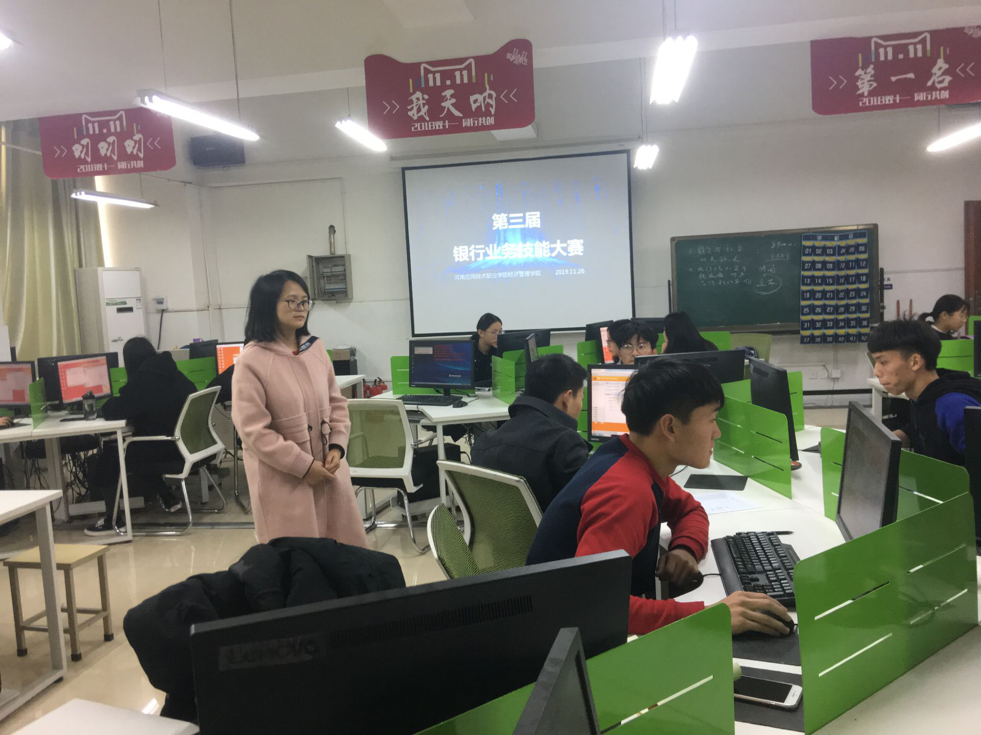 2019年12月03日下午,由crown皇冠体育平台主办crown皇冠体育平台承办的第三届“银行技能大赛”圆满落幕。本次大赛在学校大力支持和crown皇冠体育平台张召哲院长的指导下,由赵静、凌端平两位老师指导,在金融实训室E617如期举行。本次技能竞赛既是对学生金融知识和技能的考验,也是对金融专业教学成果的检验,旨在通过院内比赛,为今后参加校外技能大赛总结经验,达到“以赛促学、以赛促训、以赛促赛”的目的,以期更好地推进专业建设、提升课程教学效果。?