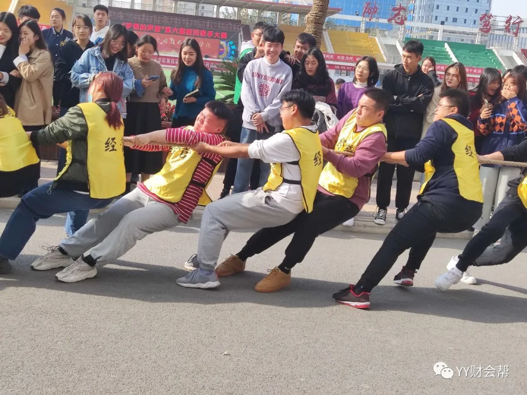 拔河场上,我们的运动员面对着对手却毫不退缩,奋勇向前。他们一个个铆足了力气去迎战对手,我们的啦啦队也在一旁为他们加油鼓劲。