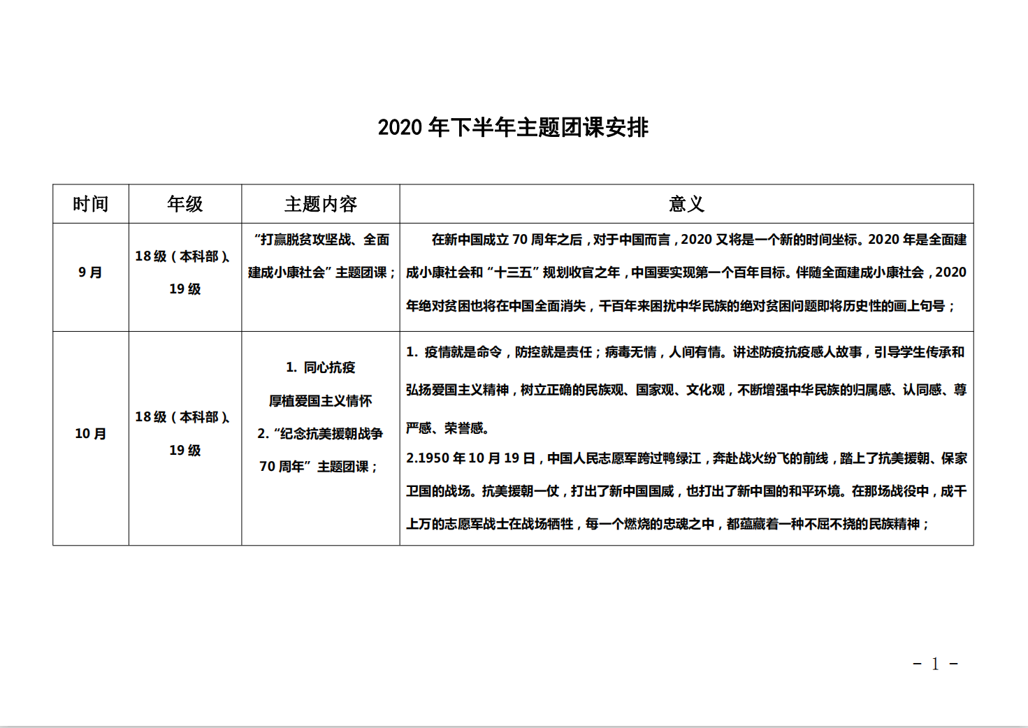 关于在青年学生中开展2020年下半年政治思想教育工作的安排意见