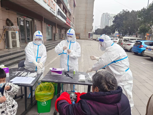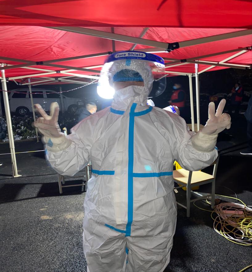 当居民来做核酸检测时,她能够准确快速地采集群众信息,同时维持现场秩序,督促居民保持间距。对于一些行动不便,无法到达核酸采样现场的居民,该同学协助医护人员上门为居民进行核酸采样。几天来的连续战斗,该同学身穿防护服,不畏寒冷和风险,召之即来,来之则战,为核酸检测工作的有序开展贡献自己的一份力量。