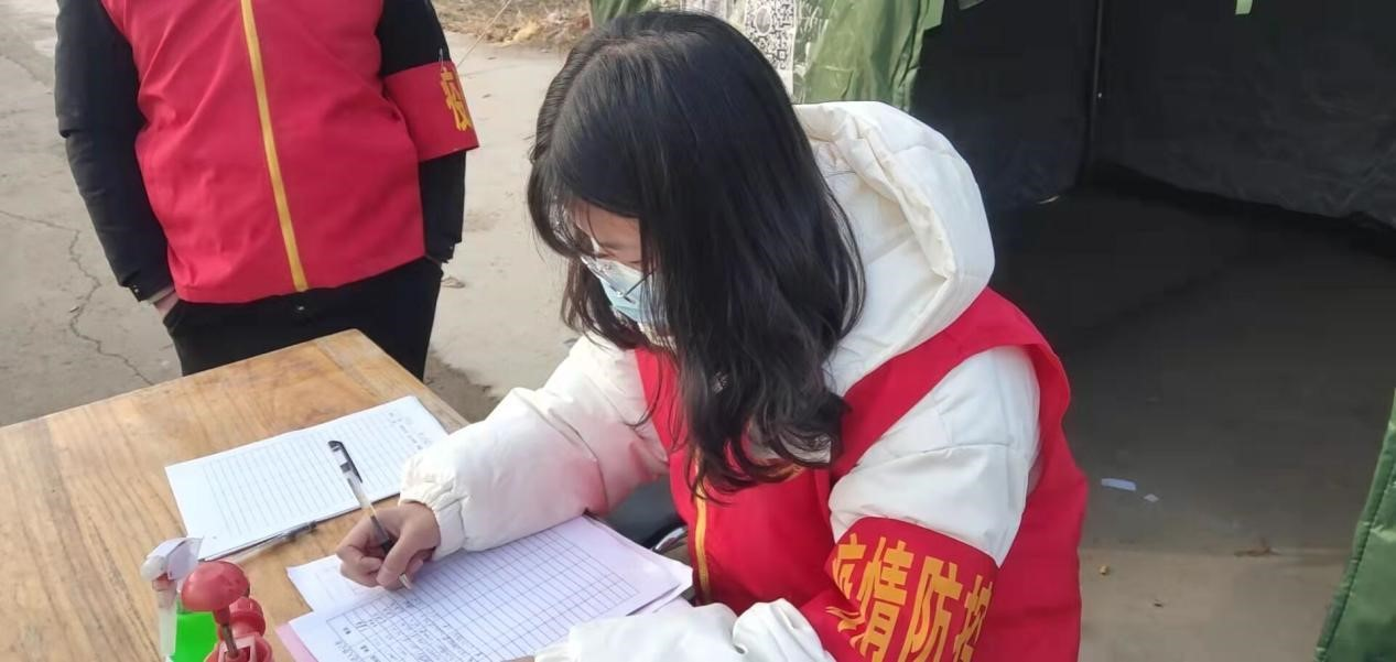 crown皇冠体育平台大数据与会计专业2103班董欣茹同学,在疫情期间,积极报名参加开封市兰考县许河乡的疫情防控志愿服务,不怕辛苦不怕严寒,充分发挥一名当代大学生勇于奉献的精神品质。