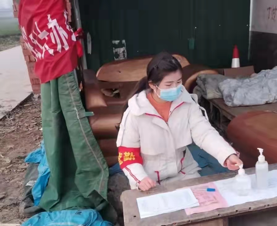 疫情当前,她每天按时到村里的疫情卡点去值勤,穿上红马甲,戴上红袖章,对过往人员测温消毒、对来往的车辆进行登记。