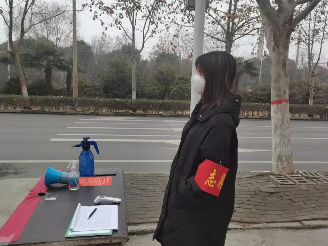 在社区的统一安排下,该同学被分配到社区疫情防控的卡点岗位上,主要负责对来往人员的体温检测、健康码行程码查验等。工作中,她认真负责,不敢有一丝放松,希望通过自己的努力,为家乡的疫情防控工作贡献自己的力量。
