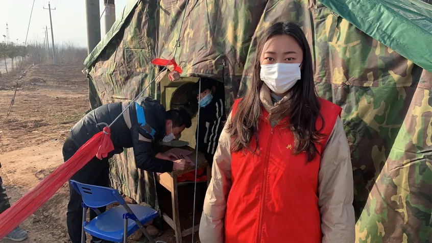 作为一名防疫志愿者,她为家乡防疫工作做出力所能及的贡献,用实际行动谱写爱的青春之歌,共筑防疫青春长城。