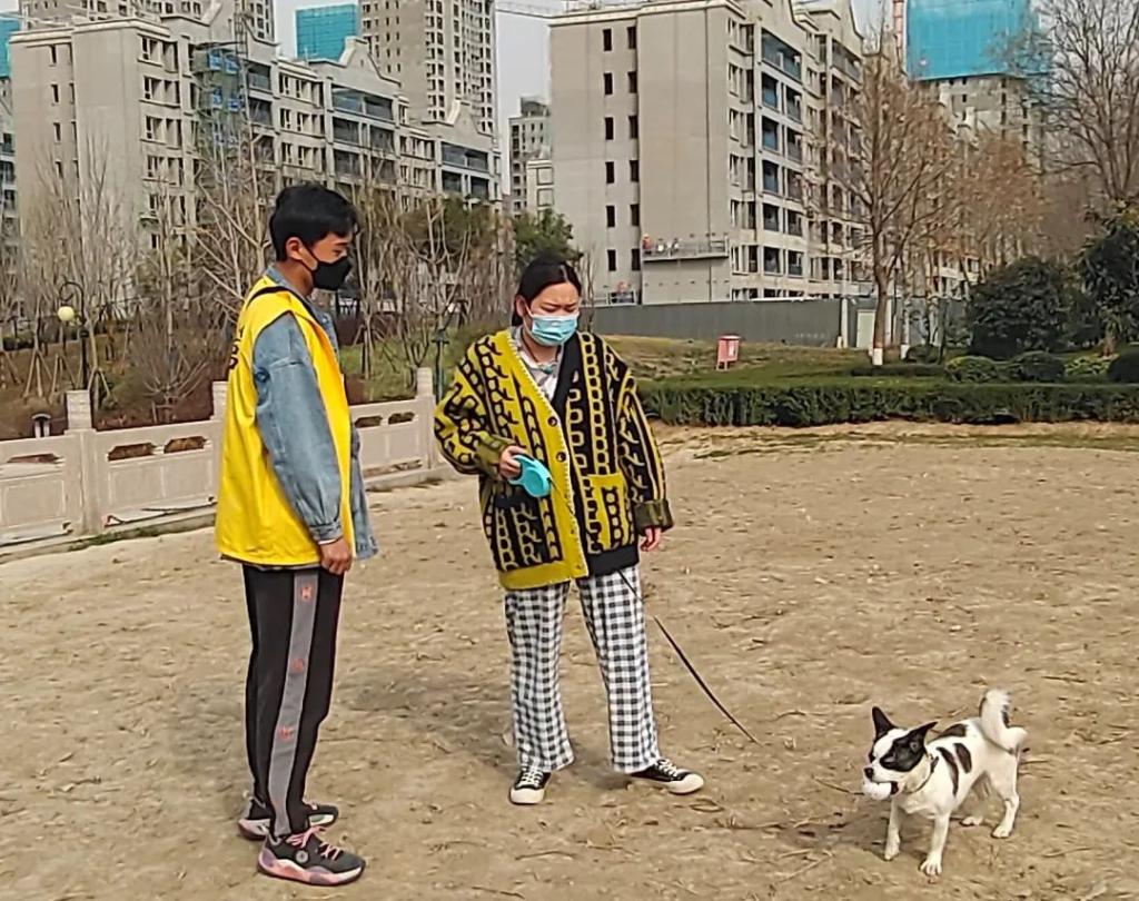 志愿队共分两组,一组负责协助社区开展义诊活动。另一组负责社区环境绿化,倡导文明养犬。