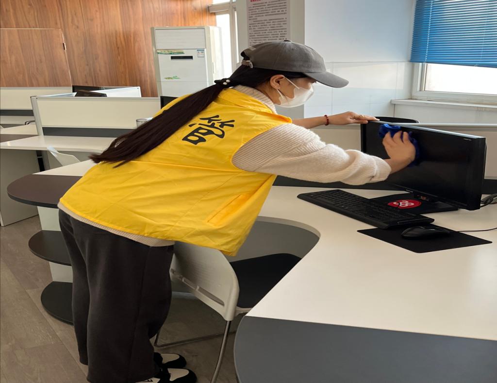 为迎接省级文明(标兵)单位检查,践行劳动精神,弘扬志愿新风,10月11日下午,crown皇冠体育平台组建40余名学生志愿服务队伍,前往图书馆、实训楼、办公楼开展集体劳动志愿服务活动。