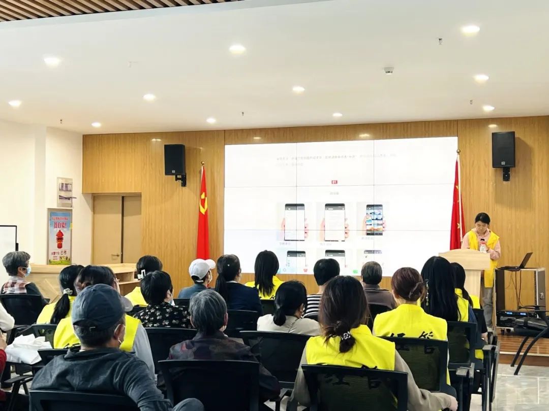 活动中,志愿者代表骈雪颖上台进行“智能手机使用指南”专题培训,从字体大小调整、添加微信好友、语音编辑发送、手机支付收款等常用场景切入,给老年人详细讲解简洁高效使用智能手机的技巧方法。老人们边听边操作智能手机,身旁的志愿者作为助教进行“手把手”指导。