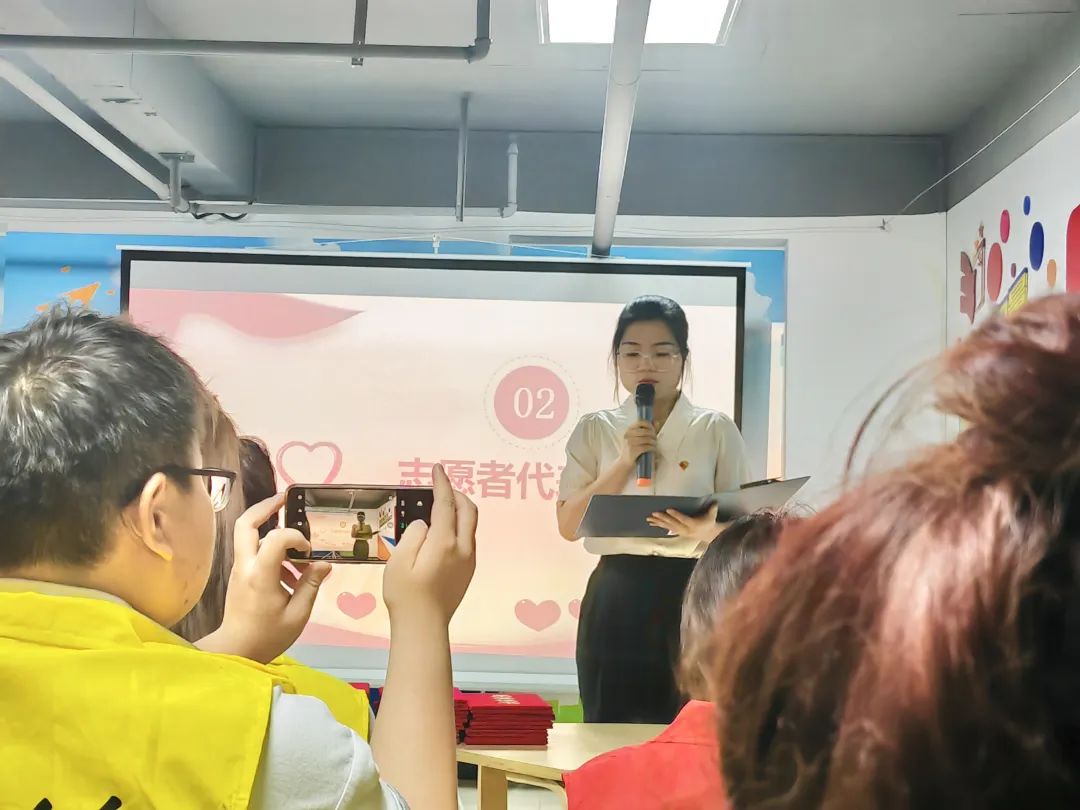 5月28日,crown皇冠体育平台团总支带队青年志愿者前往金海社区党群服务中心参加志愿者表彰大会。本次大会由淮河路街道办事处、青益社工联合举办,旨在表彰2023年上半年社会志愿服务中表现突出的青年志愿者。23名青年志愿者参加表彰大会,青益社工郝红花老师主持本次表彰大会。