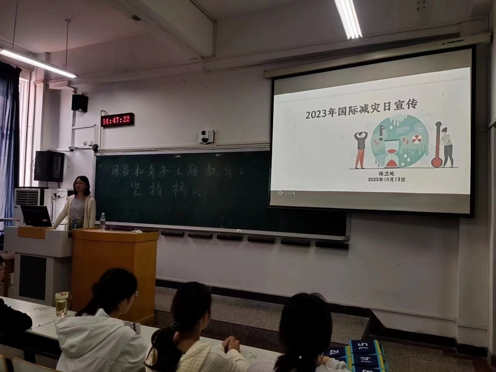 班会上,辅导员给学生们讲解了“国际减灾日”的由来,分享了洪水、山体滑坡、暴雨等自然灾害预防、自救方法。此外,还介绍了学校教学楼、宿舍楼、图书馆等公共场所安全逃生出口及疏散路线。灾难总是不期而至,希望同学们都增强防灾减灾意识,及早掌握防灾知识,做到防患于未然,多学一分自救知识,就多一份生命保障。