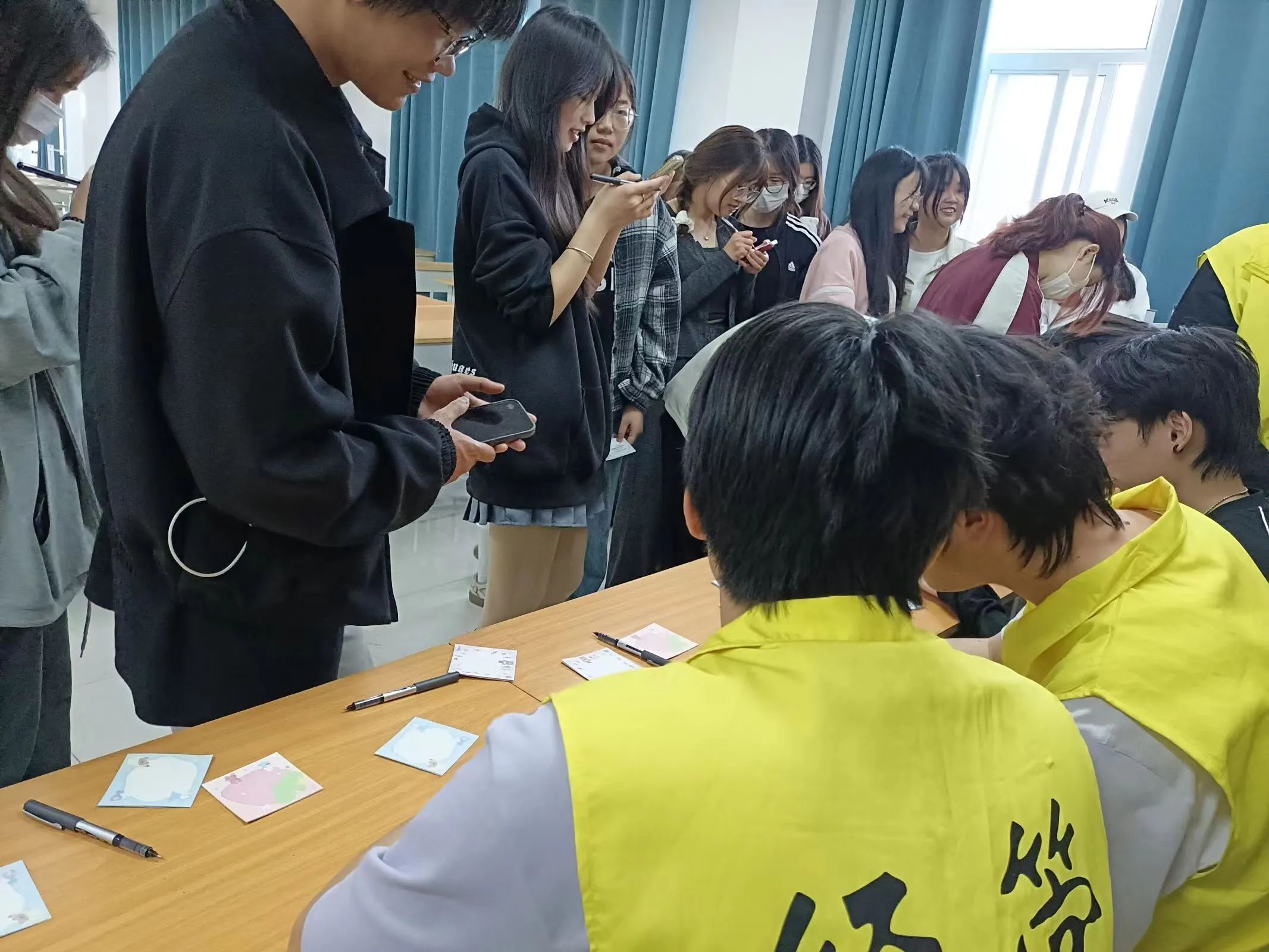 活动开始后,同学们认真写下自己对未来人生的期盼以及自己的小成就,也有不少同学写下了自己的烦心事。大家将自己的寄语贴在了活动展板上,这不仅是同学们对未来的寄语,更是对未来的畅想和期许。