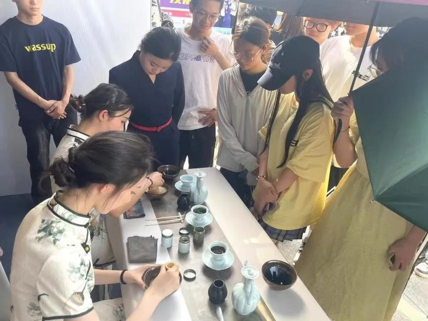茶艺展示让同学们领略了中华茶文化的博大精深。同学们在现场表演了宋代点茶艺术,并讲解了茶文化的历史渊源和内涵。大家在品茗的过程中,不仅感受到了茶香的独特魅力,也加深了对传统文化的理解和尊重。
