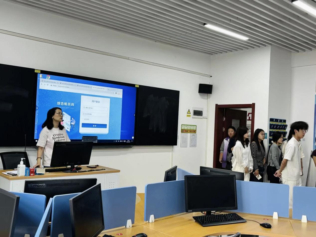 实训基地初体验。9月30日上午,在学生会志愿者带领下,2025级新生分批次、分专业参观了金融科技应用实训室、茶艺文化科普基地、财务仿真机器人实训室等实训教学场所。每个实训室由专业教师进行10~15分钟现场讲解,内容包括实训室功能、主要设备、开设课程、所能锻炼的专业技能、相关学科竞赛知识等。通过设备演示以及往届学生成果展示,增强新生直观感受。