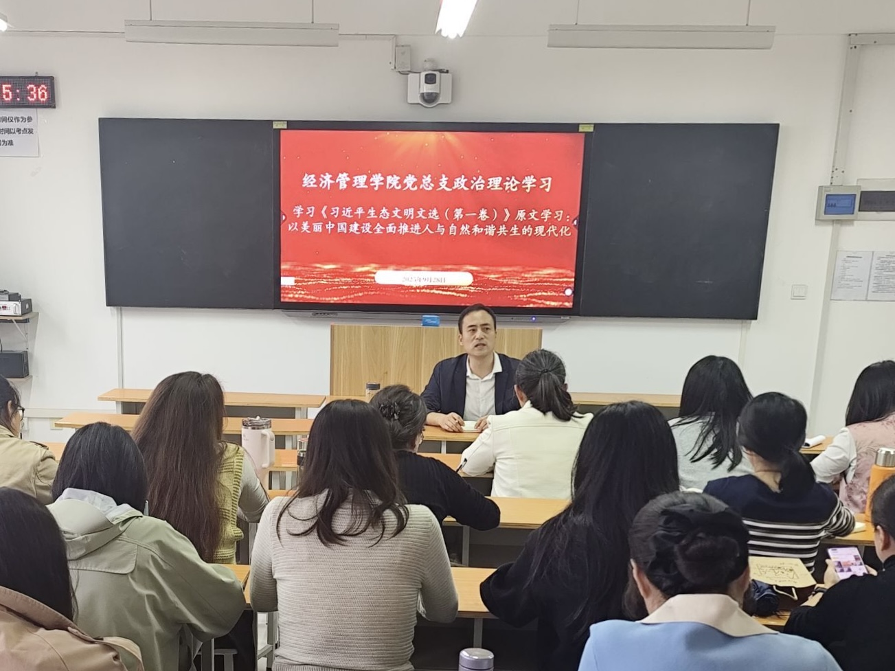 此次专题学习为全院教师带来深刻的思想启迪。大家一致认为,习近平生态文明思想不仅是国家发展的宏伟蓝图,更是教书育人的行动指南,并纷纷表示,要将“绿水青山就是金山银山”的理念融入专业课教学案例中,把生态文明的“大道理”转化为日常工作和校园生活的“新时尚”。唯有将生态文明种子播撒进学生心田,才是对“国之大者”最实在的担当,才能为美丽中国建设培养出真正合格的接班人。